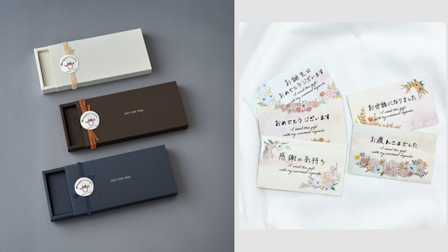 本プロジェクトのサポーターの皆様へ、感謝を込めて【C-VALUE限定 特別価格】通常、有料のオプションであるメッセージカードをクラウドファンディングの特別特典としてご用意いたしました。 年末年始のご挨拶や、大切な記念日などに一言添えることで相手を想う気持ちが伝わり、受け取る方にとってのギフトの価値は最大化します。